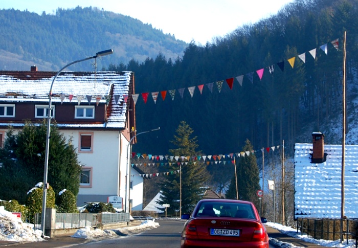 산마을에도 축제(Fasching)가 시작되려나 봅니다. 알록달록한 거리장식이....