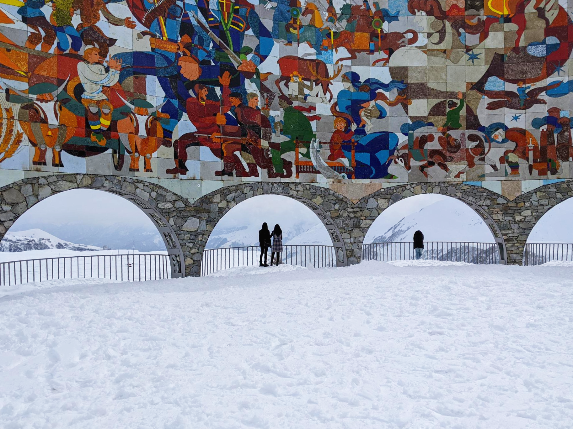 러시아와 조지아의 친선기념관? 뭐 그런 곳이고 모자이크 벽이 반원으로 둘러져 있다.