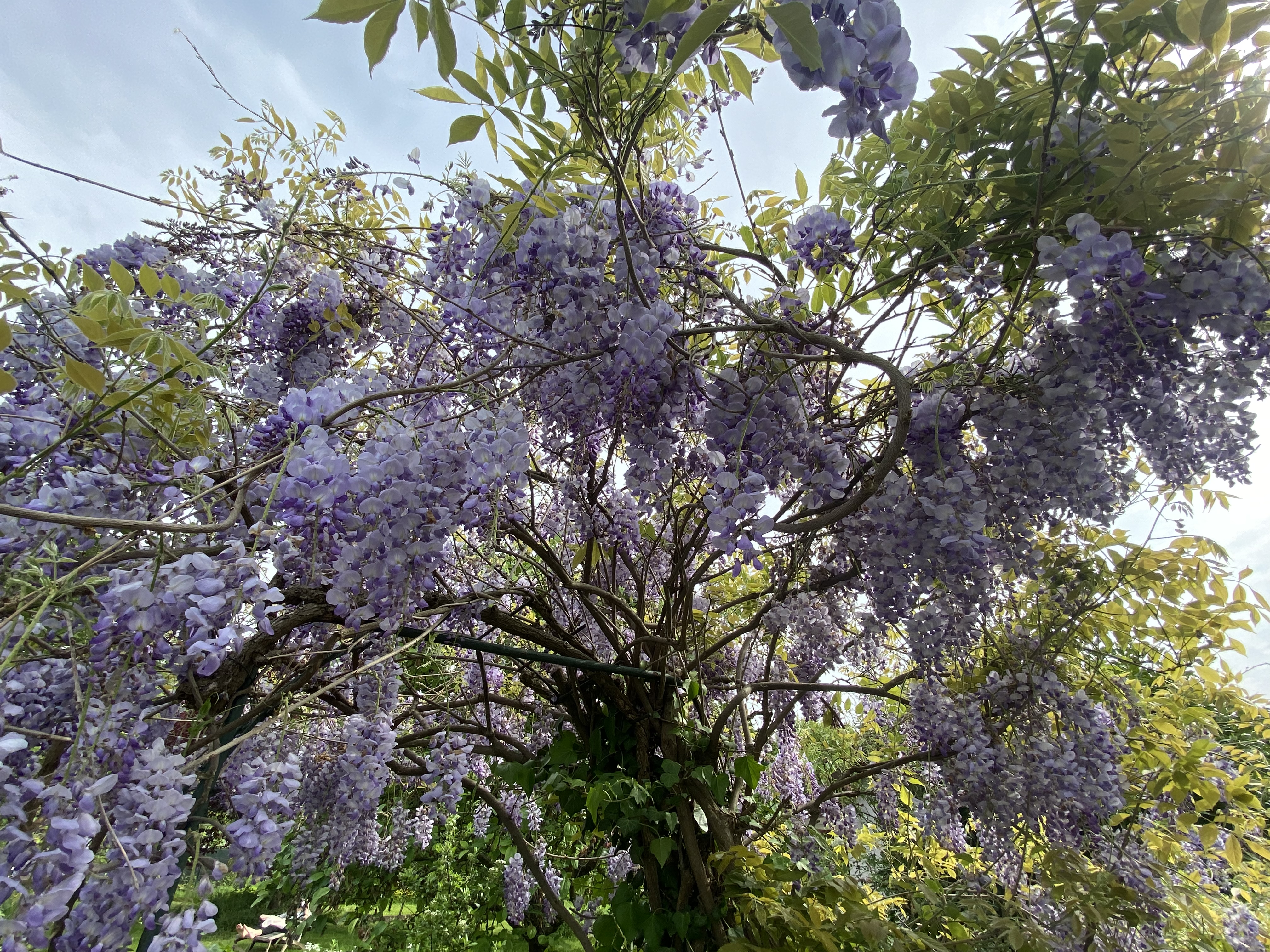 덩굴손의 지지대를 납작하게 하고 등꽃은 지지대 아래로 메달리고 그 아래는 벤취도 있고 그런 곳이 학교등에 그렇게 설치 하지요.