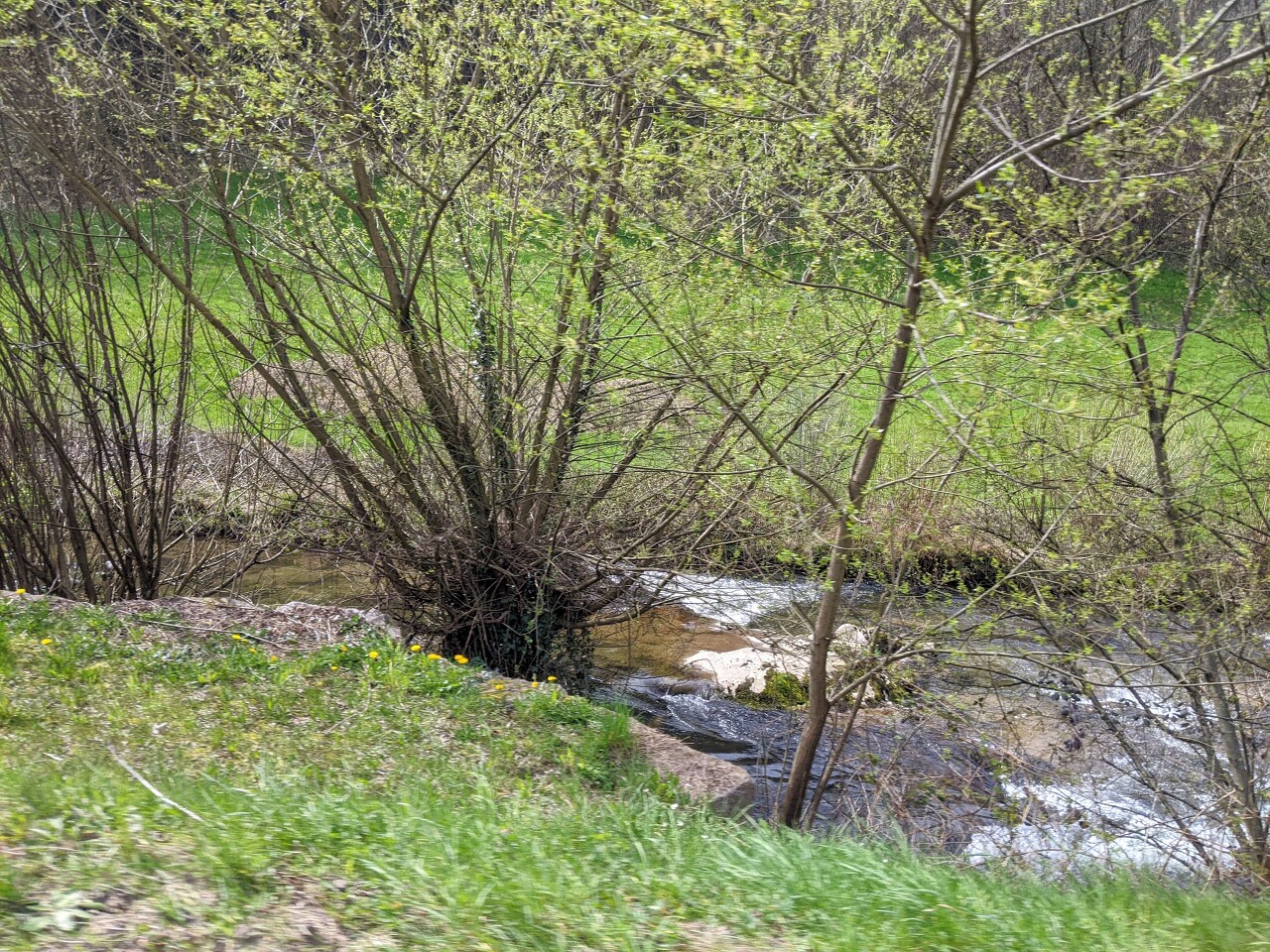 아, 이제 보니 서둘러 싹 낸 저 가지는 갯버들인가 보다.