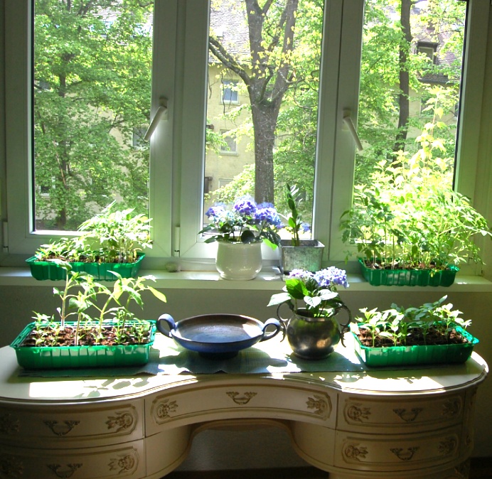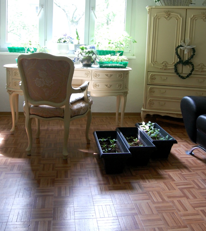 이보다 훨씬 많은 종류의 어린 싹들이 침실에도 볕을 쬐고 있어요.
