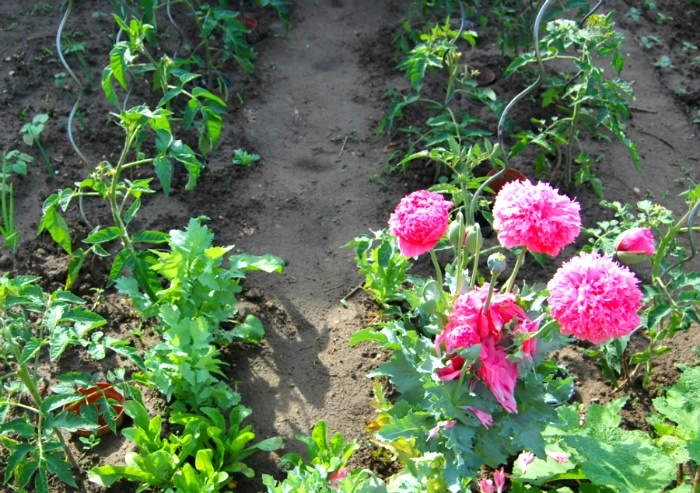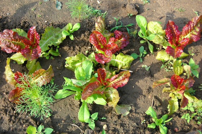 상추와 꽃나무가 함꼐 자랍니다.아 잡초도 있군요. 어디 옮겨 심어야 할텐데.....