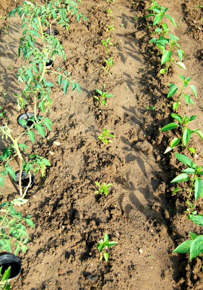 토마토, 옆에 웅덩이를 파두었지요. 아주 매운 고추 하베네로(Havanero) 약간 매운 고추고추