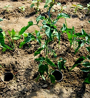 독일에서는 토마토 옆에 이런 화분구덩이를 파 놓습니다. 뿌리와 줄기 아랫부분이 입을 냉해를 방지하기 위해서입니다. 물도 토마토 식물에 바로 뿌리는 게아닌 이 구덩이에 붓습니다. 여튼 독일 기후때문에 토마토농사에 여간 공을 들이는 게 아니지요.