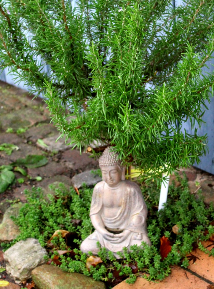 로즈마리네 대문 앞, 로즈마리(허브)와 부처님.