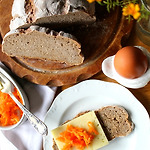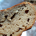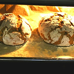 아직 반죽 상태인 호밀빵. 정성으로 기른 천연효모를 호밀가루와 물 약간의 소금과 함께 섞어 18여 시간 동안 발효를 시키고 다시 주물럭주물럭 반죽을 만져서 빵모양을 만든 뒤 1시간 발효 1시간 성형을 거친, 굽기 직전의 빵 모양이다. 거북등처럼 갈라지는 것은 반죽 안이 쉼없이 부풀리고 있다는 것. 220도 오븐에서 열심히 빵으로 구워지고 있는 두 덩이, 부엌은 물론이고 집안 전체에 기분좋은 호밀빵 냄새가 진동을 한다. 앗 뜨거!! 사진을 찍느라 오븐장갑을 끼고 불덩이만큼 뜨거운 빵을 꺼냈다. 오늘보다 내일 더 맛나고, 앞으로 열흘, 보름까지도 신선도가 유지되는 호밀빵이다. 두 덩이씩 굽지만 한덩인 늘 그때그때 지인들과 나눈다. Ich backe zu 100 Prozent Roggenbrot. Sauert..