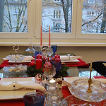 이럭저럭 하다보니 내일이 첫 어드벤트, 즉 첫 대강절입니다. 여기서부터 한해의 마지막이, 마치 연실을 떠난 연처럼 후딱 가버리지요. 조겨울에 옷을 한겹씩 더 껴입듯이 이번 한 해도 잘 살았다고 감사의 글을 한줄씩 더 써나갑니다. 올핸 붉은색 장식을 합니다. 뜻밖에도 붉은 크란츠(Adventskranz)를 선물로 받았기 때문이지요. 초를 4개 넣은 또아리모양의 크란츠는 첫 대강절에 단 하나의 촛불을 켜지요. 그 다음 주엔 두개의 촛불을 밝히고, 셋째 넷째 주까지 지나면 네개의 촛불을 다 밝힐 수 있고 동시에 기다리던 성탄이 다가와 있다는 거지요. 여차여차 하다보니, 첫 어드벤츠를 홀로 맞게 된 거 있죠. 크란츠 색상이 빨강인지라, 그냥 대충 맞춰본 식탁 장식입니다. 니콜라우스날에 친구들 두엇 초대를 해뒀으..